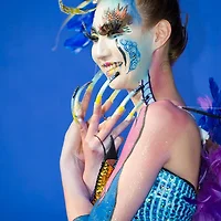 포토존에서 펼쳐진 화려한 바디페인팅의 모습입니다. 메인무대 뒤에 있는 관람석 뒤편으로는 각기 다른 배경색의 포토존(검정, 흰색, 파랑, 빨강)이 설치되어 무대 퍼포먼스 후 바디페인팅페스티벌 참가자들은 다시 여기서 포즈를 취했습니다.