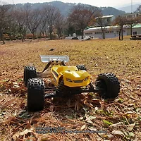 조종기에 별도의 기능을 발휘할수 있는 키가 있어 지형지물을 타고 올라갈때에 매우 유리합니다. 또한 무거운 덩치만큼이나 힘도 좋은데요. 제가 가지고 있는 트러기와는 비교가 안될지라도 꽤나 빠른 속도를 낼수가 있습니다. 따라서 가볍게 서킷을 도는데도 유리하구요.