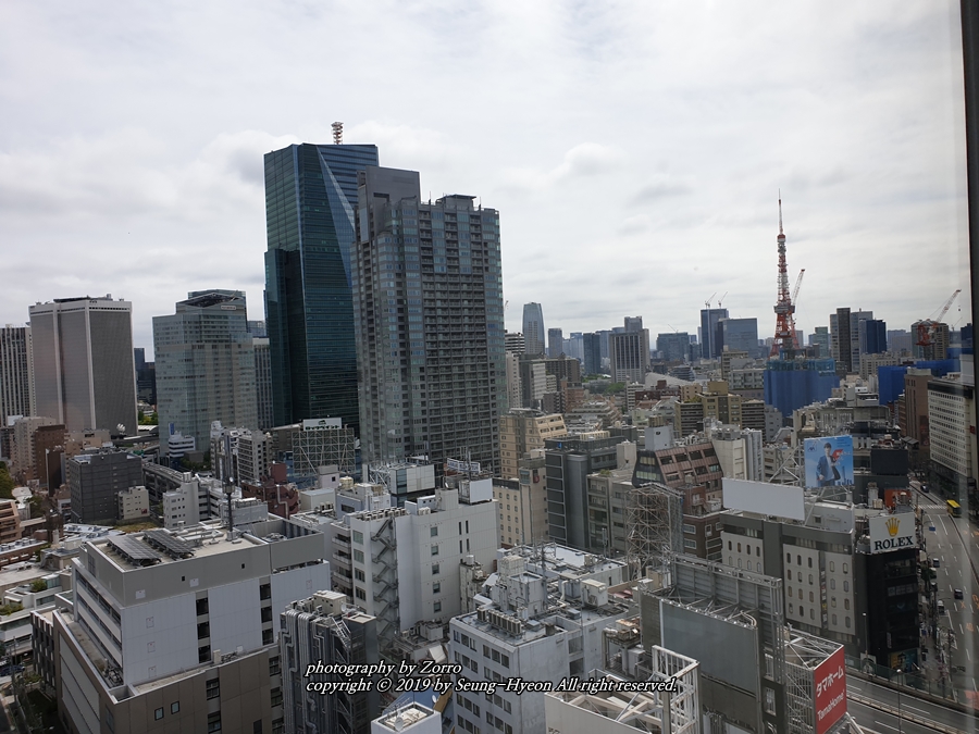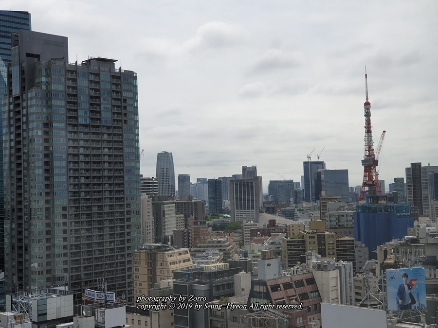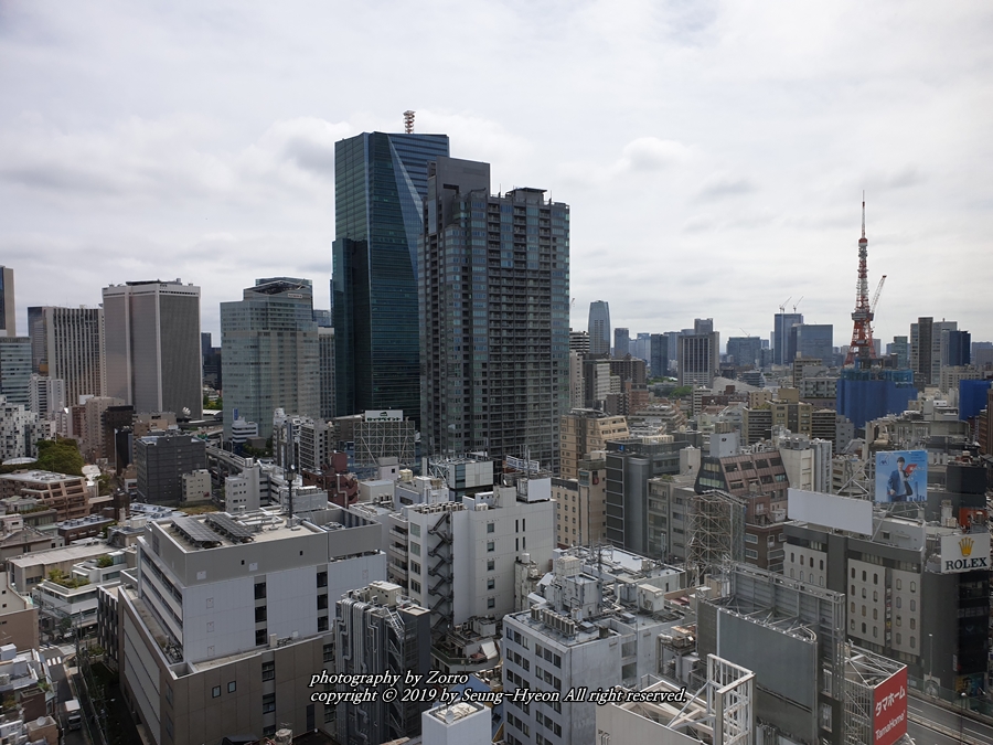 약간 오른쪽으로 고개를 돌려서 봐야 했지만 그래도 도쿄타워가 보이는 렘롯폰기였습니다. 4층 데스크에서 방을 선택할때 추가요금을 내고 도쿄타워가 더 잘보이는 방을 할수도 있지만 그렇게까지야~ 할 필요가 없을거 같았네요. 제대로 보고 싶다면 롯폰기 힐즈 타워에 가면 제대로 감상할수가 있습니다. 그럼 전망 쫘악~ 올려볼게요^^