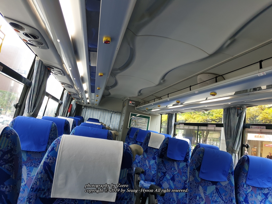 일본 버스 특징답게 가장 뒷편에는 화장실도 자리하고 있습니다.