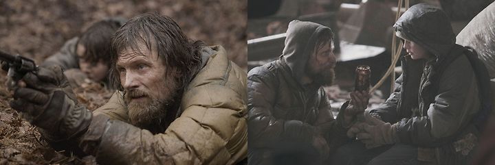 영화에서 아버지역으로 나오는 비고 모르텐슨은 반지의 제왕에서 아라곤역으로 우리들에게 널리 알려져 있는 배우이다. 그는 '더 로드'에서 굶주림에 지친 역을 위하여 무려 20kg이나 감량을 하였다고 한다. 얼마 전 개봉했던 '내사랑 내곁에'에 출연 하였던 김명민이 떠오르는 대목이다. 하여튼 이 두 배우(아들의 연기도 괜찮다)의 열연과 함께 원작의 탄탄한 스토리는 영화를 보는내내 우리들에게 몰입감을 높여주게 된다.