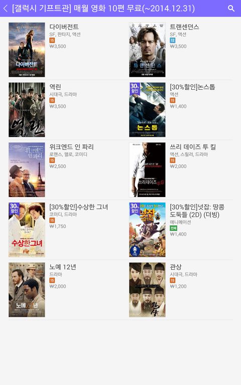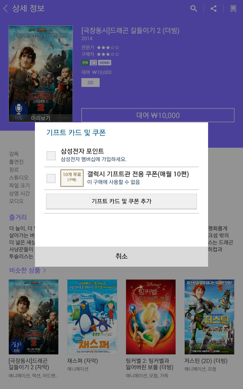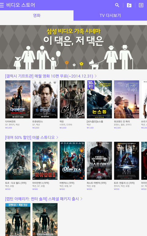 저 같은 경우 다이버전트랑 넛잡을 받아서 보았습니다. 모든 영화를 이용할 수 없어 아쉬움은 있지만 그래도 손쉽게 보고 싶었던 영화를 몇편 볼 수 있다는 장점은 있네요. 참고로 삼성 비디오 혜택은 이번연도 12월31일까지만 제공이 된다고 합니다. 삼성전자 갤럭시 탭S 10.5 가 있으시다면 한번 시도해보세요^^