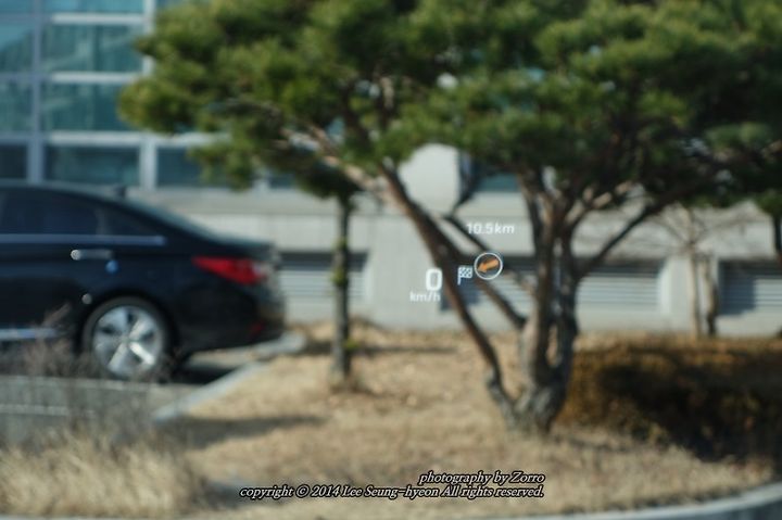 헤드업 디스플레이 HUD입니다. 낮에도 쨍하니 잘 보이더군요. 크기나 색도 변경이 가능하던데 없다가 있으니 좋긴 하더군요. 특히 속도 볼때 유용하다는.... 근데 처음 느낌과 다르게 계속 쓰다보면 잘 안보게 되더라는... 그냥 있으면 좋다라는 정도인거 같아요.