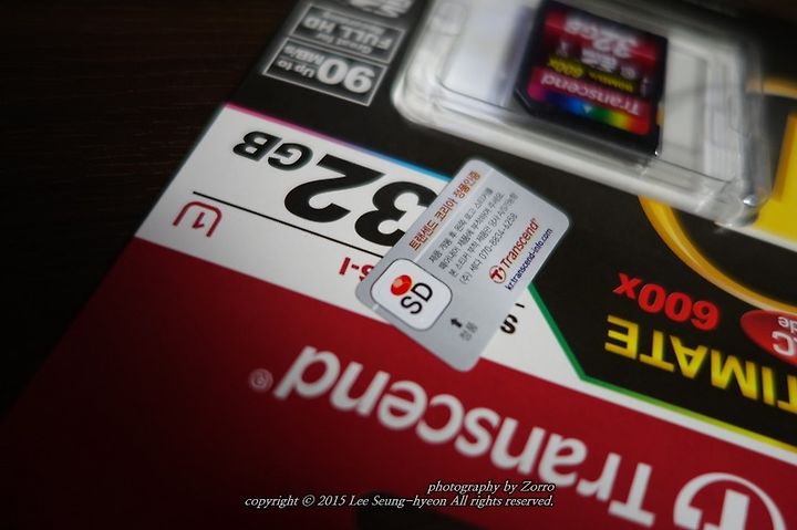 이름하여 현존 최강의 속도를 즐긴다는 UHS-1 카드.. 600배속의 트랜샌드 32기가 메모리입니다.