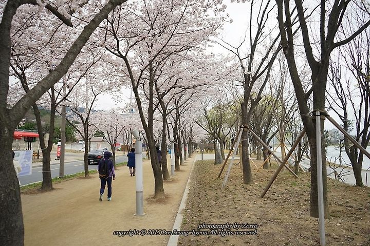 올해 날씨는 유난히도 변화무쌍한것 같습니다. 얼마전까지만 해도 그렇게 추운 날씨가 갑자기 초여름의 날씨로 변하더니만.. 요 근래 며칠간은 계속해서 흐리고 비가 오는 날씨가 이어지고 있네요. 이글을 쓰는 와중에도 비가 조금씩 촉촉히 내리는... 거의 봄장마 수준입니다;; 특히나 내일은 기온이 뚝 떨어지면서 황사에 미세먼지까지 영향을 줄 수 있을듯 보입니다. 벚꽃 구경하기에 딱인 시기인데 이렇게 날씨듯이 안받쳐주니 아쉽네요. 대구 수성못에 있는 벚꽃을 사진으로 담아보았습니다. 이날도 잔뜩 흐리다가 밤에 비가 왔었지요. 이제 꽃잎들도 슬슬 떨어지고 어떤 나무는 파랗게 변했던데 흘러가는 봄꽃 시간이 아쉽기 그지 없습니다...
