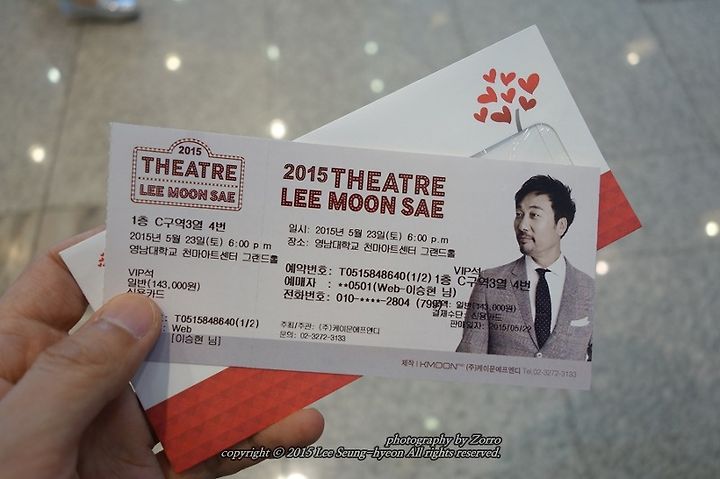 그어느해보다도 뜨거운 한여름 같은 부처님오신날입니다. 이제 나름 길었던 연휴도 막바지네요. 즐겁게 보내고 계신가요. 이번 휴일에서 가장 뜨거웠던 한순간을 꼽으라면 바로 오늘 소개해드리는 이문세 콘서트입니다. 이런 문화적인 공연과는 그리 친숙하지 않지만 이 기회에 종종 다녀보려구요. 기대반 설레임반으로 갔는데 앞으로 더욱 많이 이문세라는 가수를 좋아할것 같습니다. '2015 Theatre 이문세'라는 이름으로 기획된 이번 전국투어 콘서트에서는 앵콜송까지 스무곡이 넘는 명곡들을 감상할 수 있었습니다. 조조할인, 붉은노을, 이별이야기등 예전곡은 물론 이번 음반에서 나온 봄바람, 사랑 그렇게 보내네 등.. 정말 제대로 즐길 수 있는 무대가 가득했습니다. 혹시 고민하고 계신분이라면 저는 강추! 인증샷과 함께 공연에서이 장면들도 조금 남겨봅니다. 참고로 공연때에는 촬영불가이며 마지막으로 진행되는 앵콜송에서는 찍을 수 있답니다. 참고하세요^^