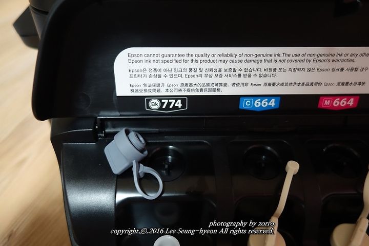 잉크 충전 방법은 간단합니다. 마개를 열어서..