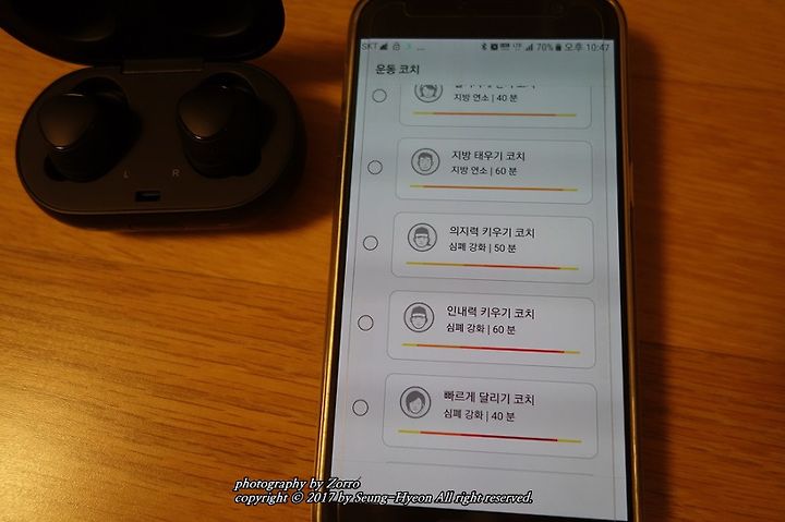 그리고 선택한 이어버드를 통해 운동 데이터가 기록.