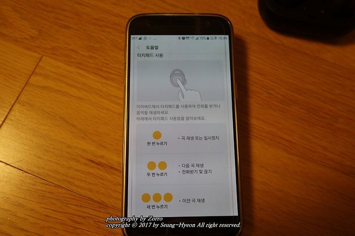 이어버드 음량을 조절할수 있으며.