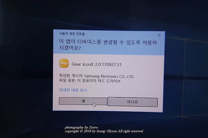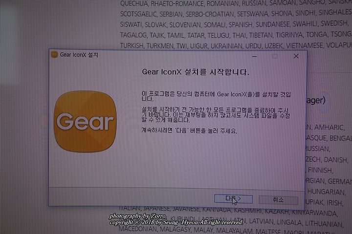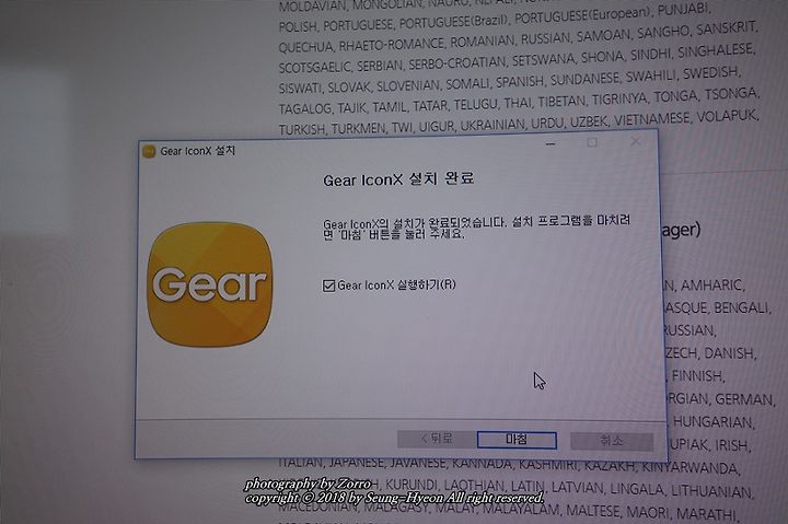 자.. 그럼 설치를 하고서 기어 아이콘x 2018을 연결하여 봅니다.