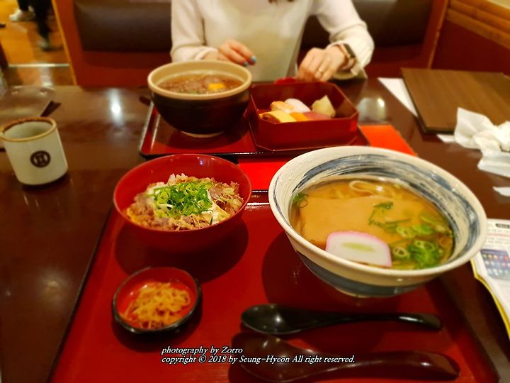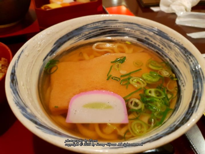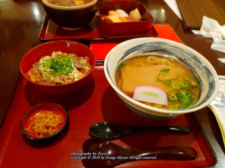 지금 되돌아보면 꽤나 괜찮았던곳이 바로 이곳 키네야가 아닐까합니다. 나중에 돌아올때 공항수속전 이곳을 찾는다는것을 깜빡해서 아쉬워했을정도거든요. 여행객들이 가지고 있을 캐리어도 옆에 놔둘수 있을만큼 넓직한 공간을 자랑하며.. 카드 결제 또한 됩니다. 또한 무엇보다 저희처럼 자유여행을 오실분들을 위하여 메뉴 사진 옆에는 한국어로도 안내가 되어 있었답니다. 초밥 5개와 함께 나오는 우동정식. 그리고 제가 주문한 메뉴 또한 만족도가 높았네요^^