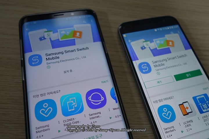 두 휴대폰에 삼성 스마트 스위치를 설치하신후..