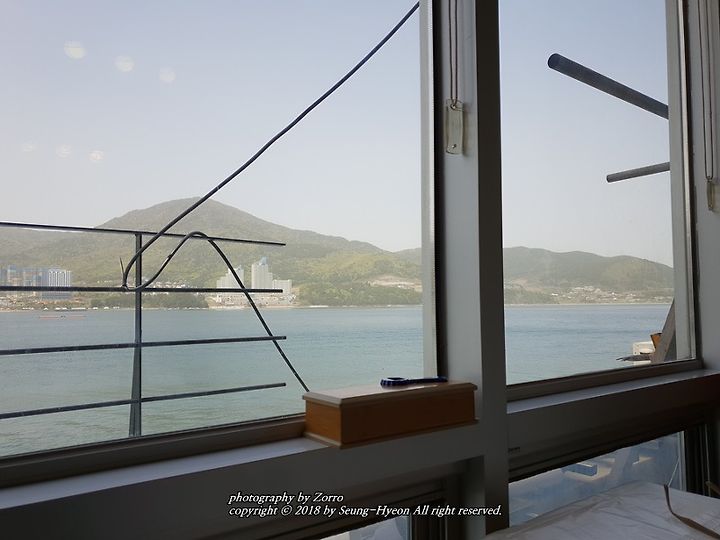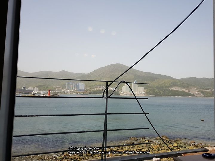 운좋게 이렇게 바다가 보이는 창가에 앉으면 기분이 좋습니다.