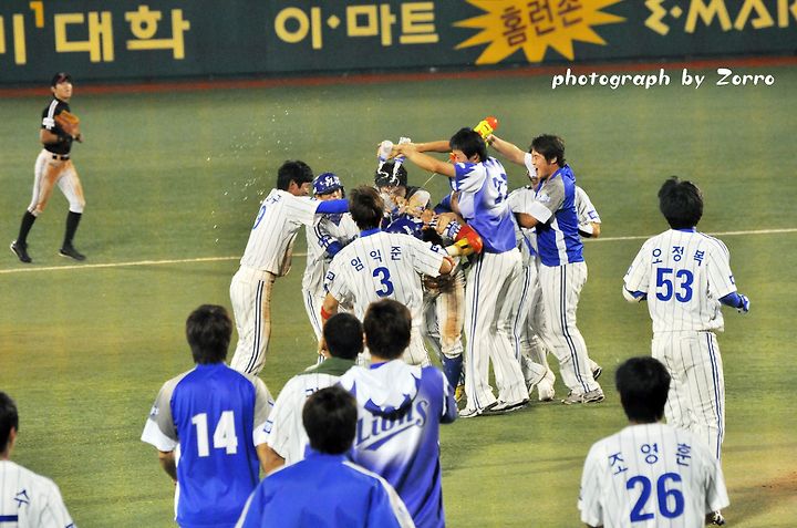 2-2로 팽팽히 맞서던 삼성은 연장 10회말 조동찬의 끝내기 안타로 3루에 있던