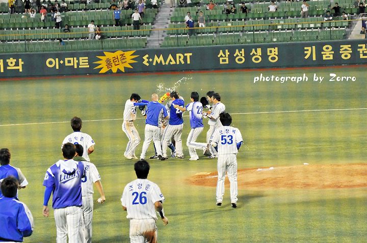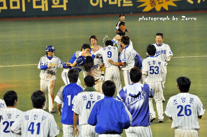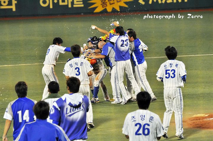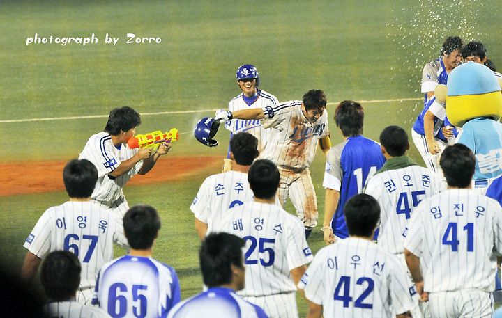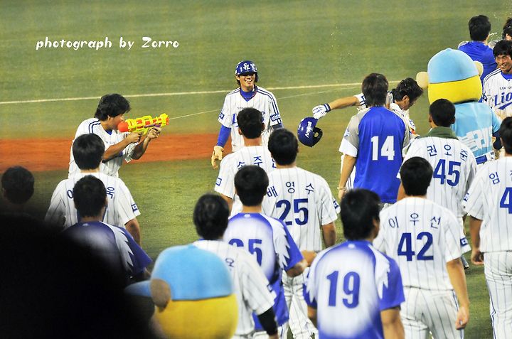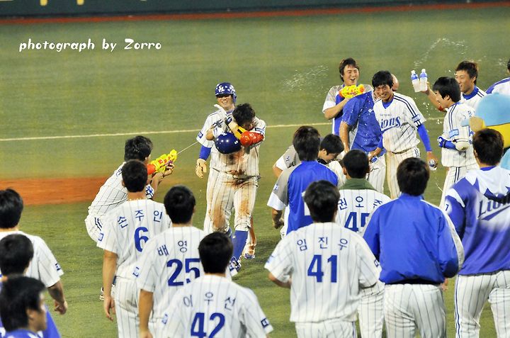 끝내기 안타 뒤의 시원한 물세례는 언제봐도 시원하고 기분 좋은거 같습니다^^