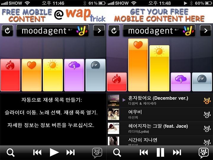 "Moodagent" 또한 무료랍니다^^ 받으셨으면 실행해보세요~ㅎㅎ