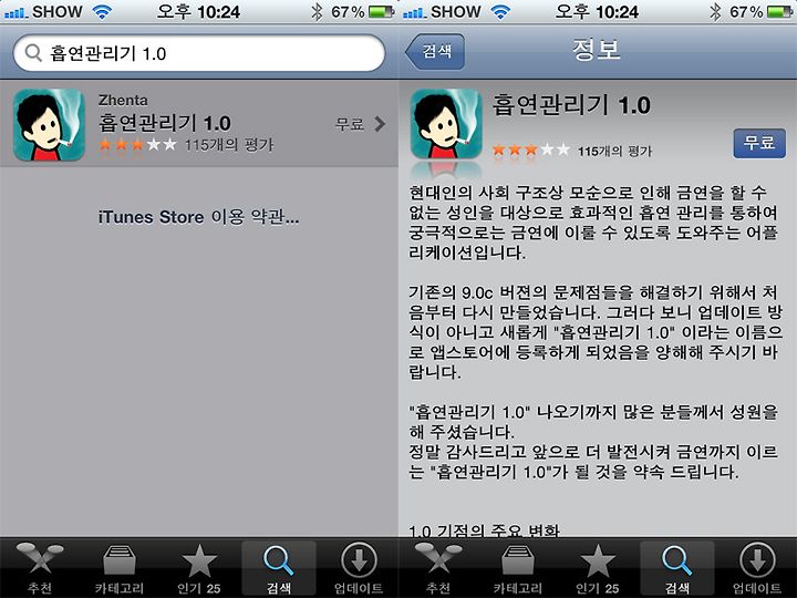 자신의 흡연량을 알수 있게 해주는 아이폰 어플