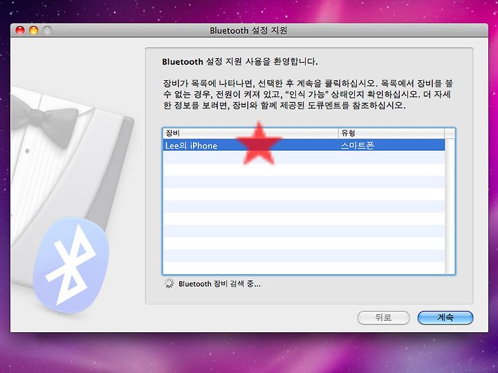 그 다음 자신의 스마트폰을 선택한 뒤 계속을 누르시구요~
