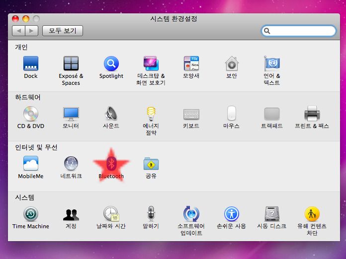 시스템 환경설정을 들어가신 후 블루투스를 선택합니다.