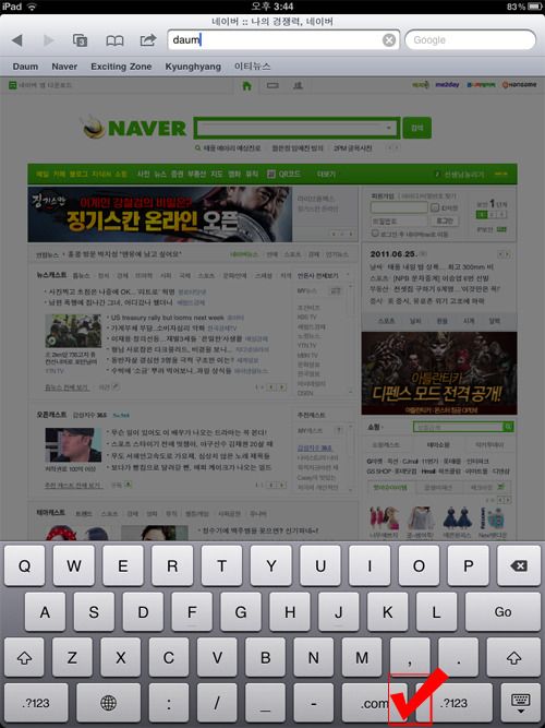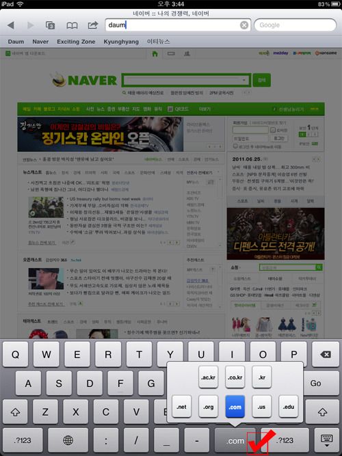 아이패드2 사용법 - 아이패드2에서 다양한 하위 도메인 쉽게 입력하는방법