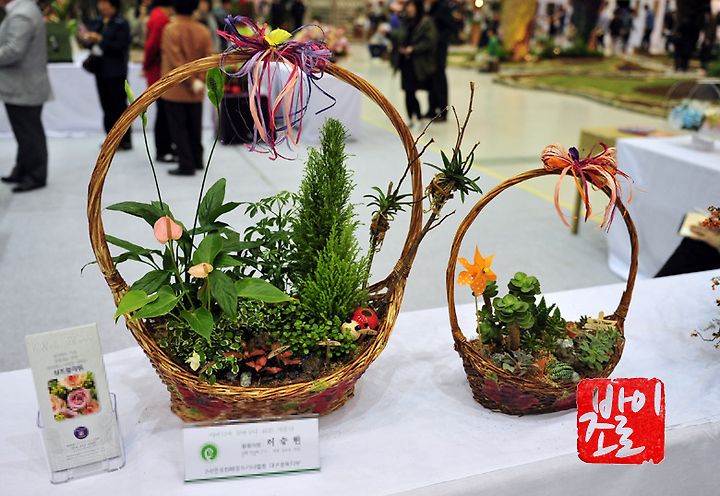 어제 야생화에 이은 제2회 대구꽃박람회의 모습입니다. 오늘은 '아이디어 꽃바구니 40인 작품전' 이 되겠습니다. 흔히 생일이나 졸업식 같이 축하할 일이 생기게 되면 꽃바구니를 선물하며 축하인사를 하게 됩니다. 이때에 사게 되는 꽃바구니는 꽃의 종류에만 약간 차이가 있을뿐 그리 큰 차이는 느끼지 못했는데요. 꽃박람회에서 전시된 꽃바구니들은 그렇지가 않았습니다. 아이디어 꽃바구니라는 이름에 걸맞게 톡톡 튀는 아이디어들로 뭉쳐져 있는 꽃바구니들.. 함께 감상해보시죠~