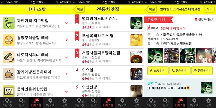 나타나게 된 정보를 자신의 스팟에 담을수도 있으며 예약을 원한다면 바로 통화하기 기능도