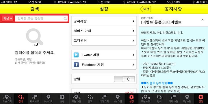 자신의 위치반경내에서 맛집이 궁금하다면 지체없이 '아임IN핫스팟'으로 찾아보시기 바랍니다.