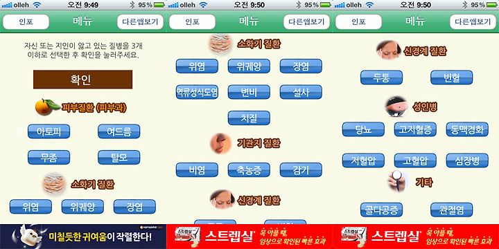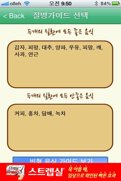자신의 질환을 선택할 경우 먹으면 좋은음식과 나쁜음식을 분류해서 보여주는 스마트한 어플 '내게가장좋은음식은?' 을 소개합니다. 현대인들이 겪고 있는 다양한 질환들이 분류표에 있으니까요.. 자신의 질환을 선택하여 음식을 먹게 될때에 활용해보시기 바랍니다.