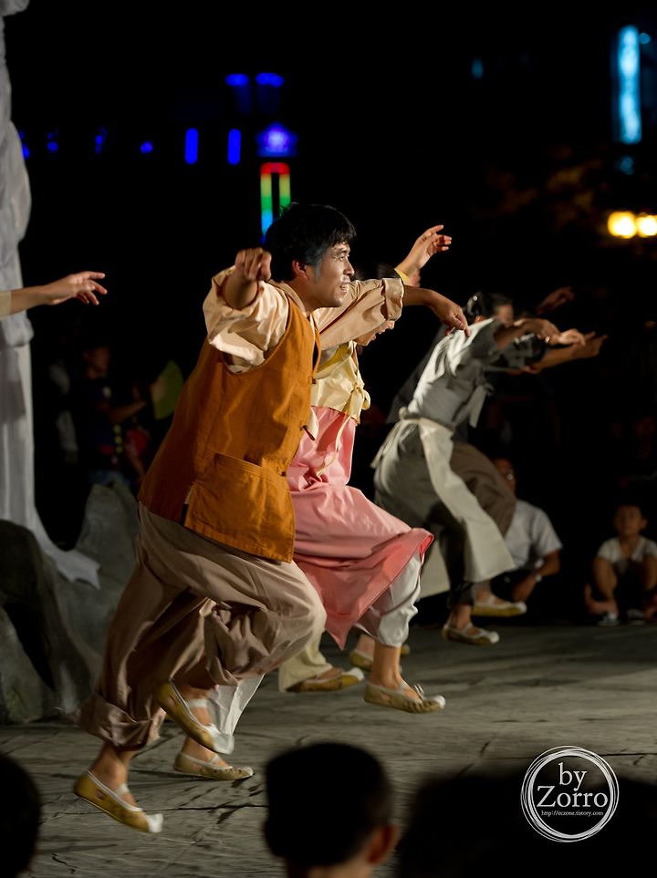 구미전국마당극축제에 가면 마당극만 볼 수 있는것이 아닙니다. 식전 오프닝 행사로 아리따우신분들이 나오는 구미시립무용단의 모습을 살펴보실수가 있습니다. 따라서 마당극축제 행사전에 꼭 가셔서 보시기 바랍니다. 매일 다르게 펼쳐지는 마당극무대. 29일에는 한국현대사의 모습을 써낸 '귀동아 방귀동아'를 볼 수가 있었습니다. 방귀로 인하여 펼쳐지는 이런저런 사건들.. 신명나고 역동적인 모습들로 재미나게 감상할 수 있는 시간이었습니다.