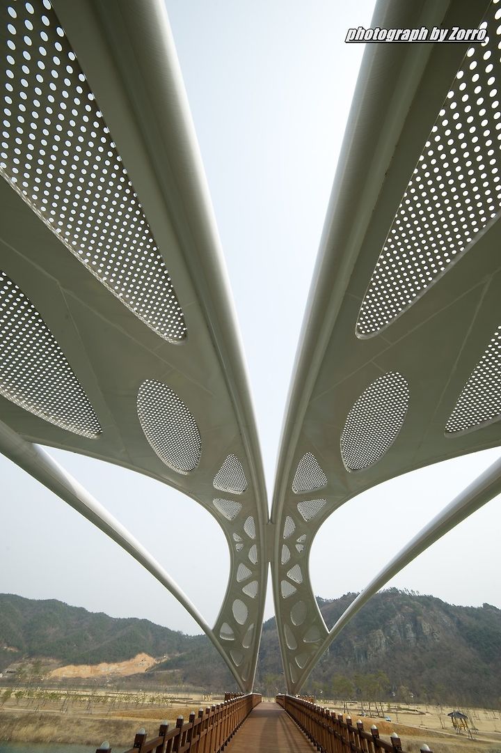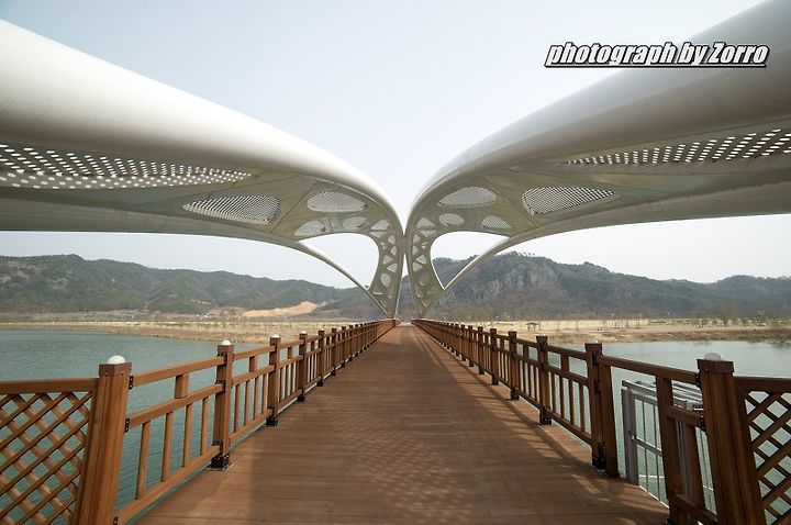 경천섬으로 가기 위해 만들어진 나무다리 위에는 곤충형상을 한듯한 조형물이 보입니다. 꽤나 튼튼하고 멋있어 보입니다.