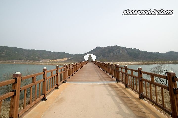 경천섬을 가기 위해서는 나무다리를 건너야한다