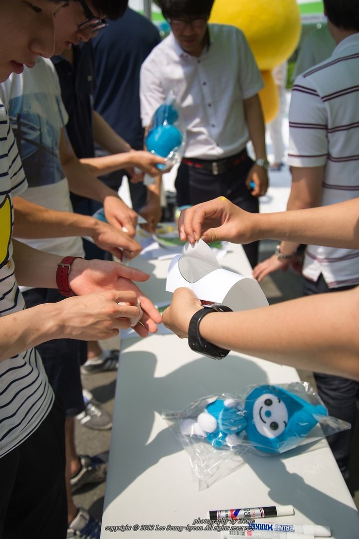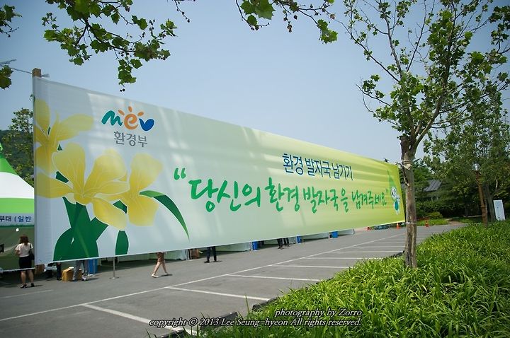 뜨거운 햇살만큼이나 뜨거웠던 열기의 환경부 부스 행사장. 우선 환경 발자국 조형물 만들기 행사장의 모습입니다. 참여방법은 다음과 같았습니다.