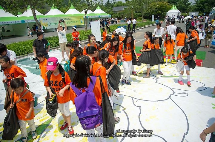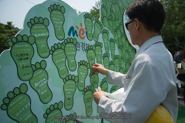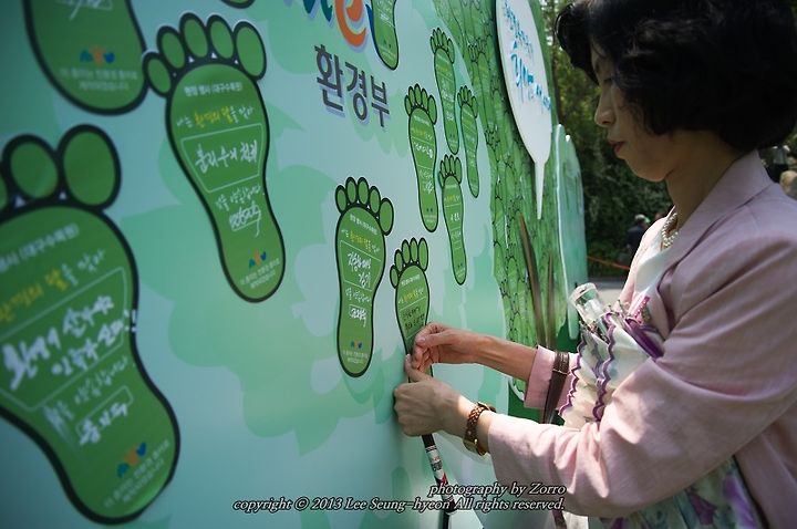 행사장에 직접 찾아오신 윤성규 환경부 장관님의 에코 플라워 프린팅을 시작으로 정말 많은 참가자들의 환경 발자국 남기기가 진행되었답니다.
